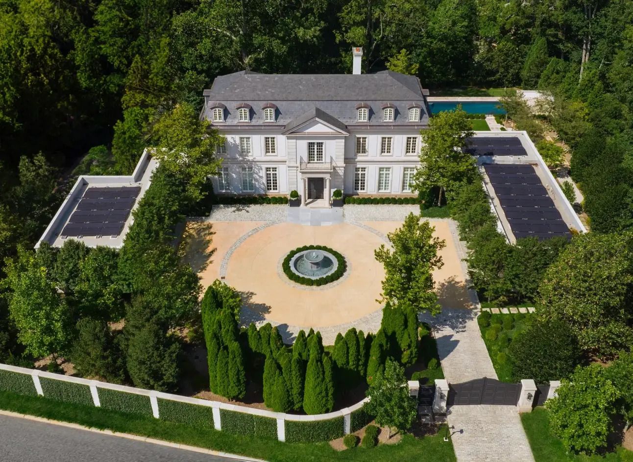 Luxury Features: The 16,250-square-foot estate includes five bedrooms, a marble fountain, a wine room, an indoor sports court, and a putting green.