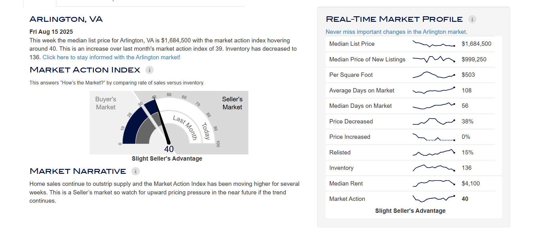 Washington, DC’s housing market is holding steady—but don’t get too comfy. Median sale prices slipped 1.1% to around $703K, and homes linger about 56 days—14 days longer than last year. Buyers still make roughly two offers per listing, with a 98.2% sale-to-list ratio and just 20% selling above list.